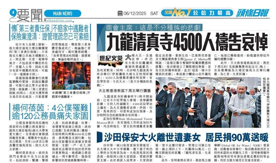 آدینه گذشته نمازگزاران مسجد کولون یاد درگذشتگان حادثه حریق هولناک در منطقه Tai Po هنگ کنگ را که منجر به جان باختن و مجروح شدن صدها تن گردید گرامی داشتند.